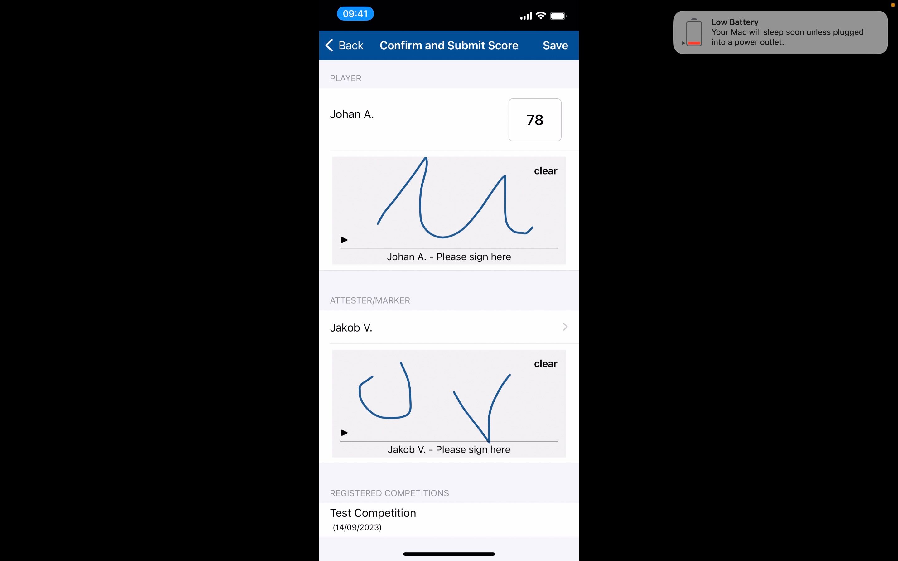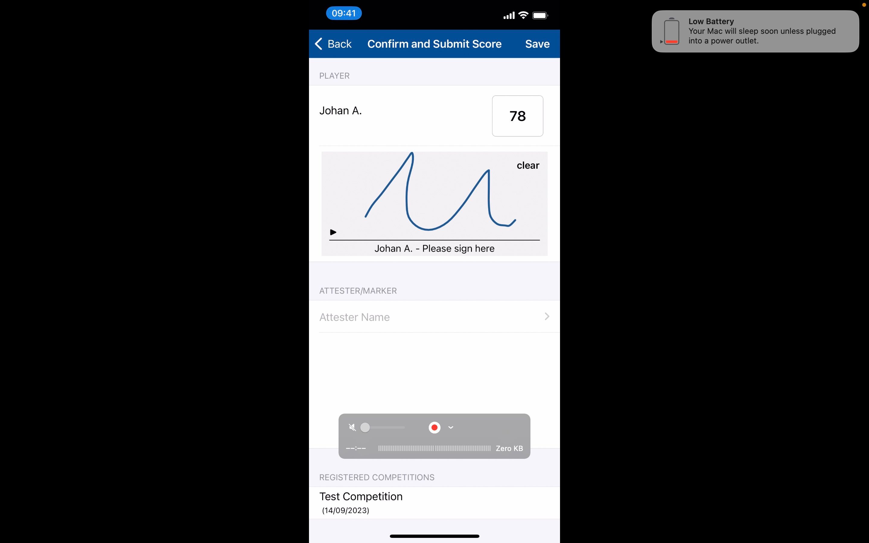 17. Click Save to submit the score.