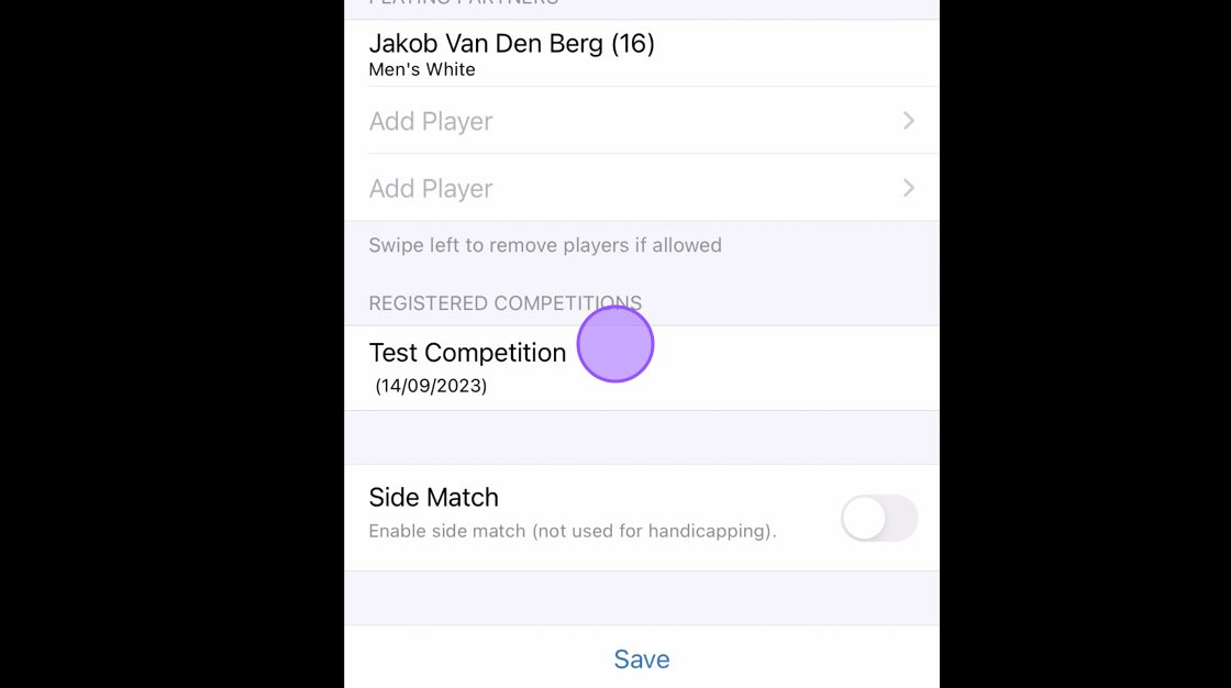 4. Once added the player will show in the playing partners section.
