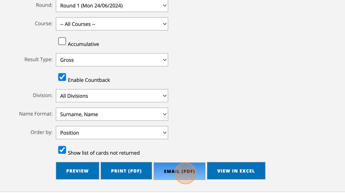 1. Once a competition has been completed, you can now send the results to competitors from the dashboard results section by selecting Email (PDF)