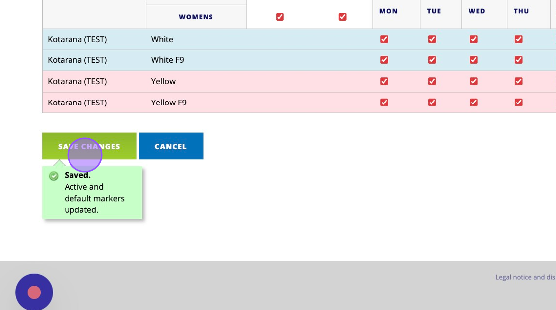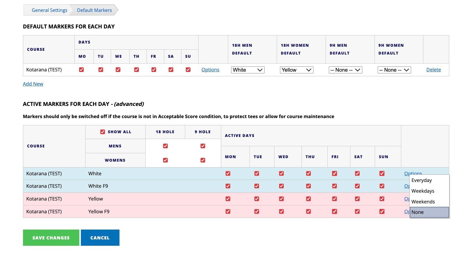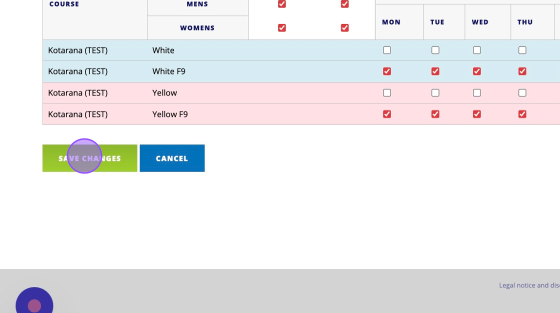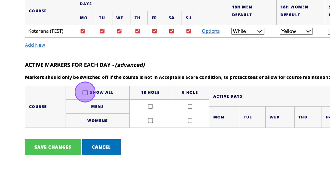 9. Click "SAVE CHANGES" to disable to Tee. This will remove it from the App and back office so you aren't able to submit scores against it.