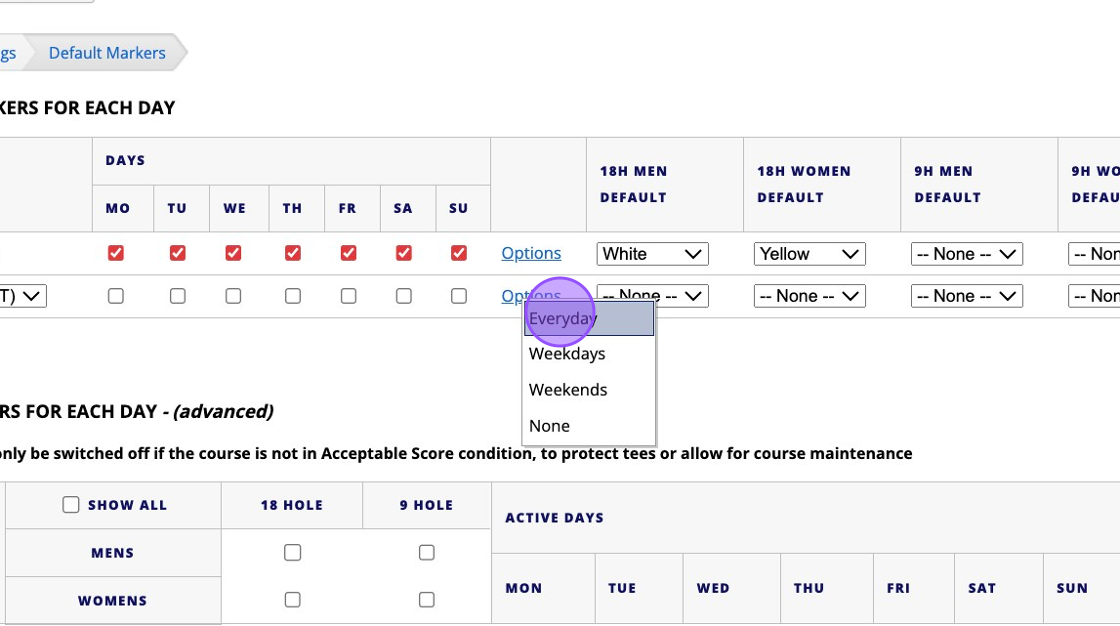 10. To activate a Tee you'll need to make sure the boxes are ticked. To do this for all days, click "Everyday"
