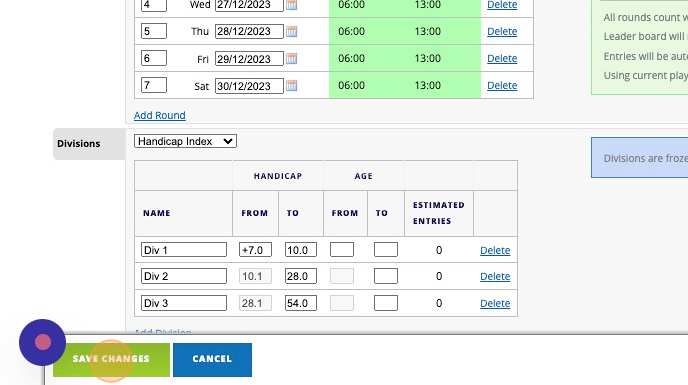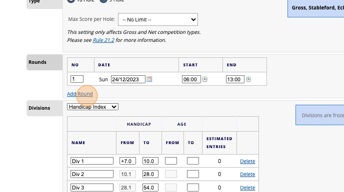 9. Before additional rounds can be added to the series, save the event as a single round event