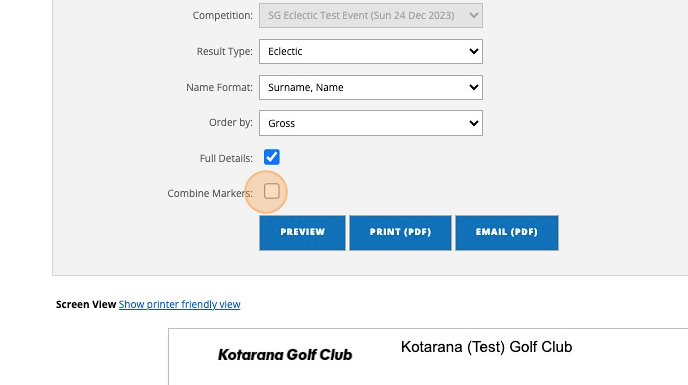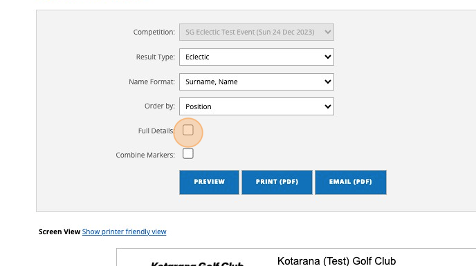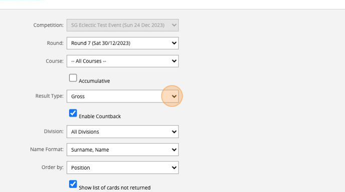 14. Once scores have been submitted during the event these can be seen in the "Results Report" where the format and accumulative score options are available