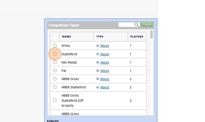 4. Choose the Competition Type - Type in "Eclectic" Remember to select the tick box and the APPLY