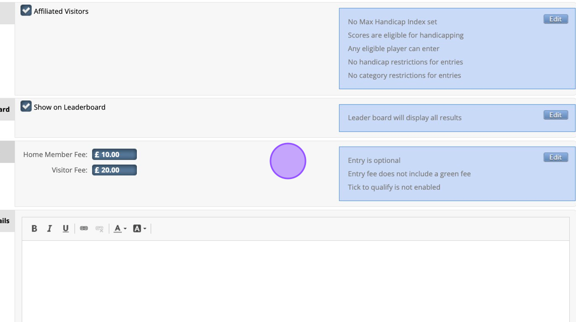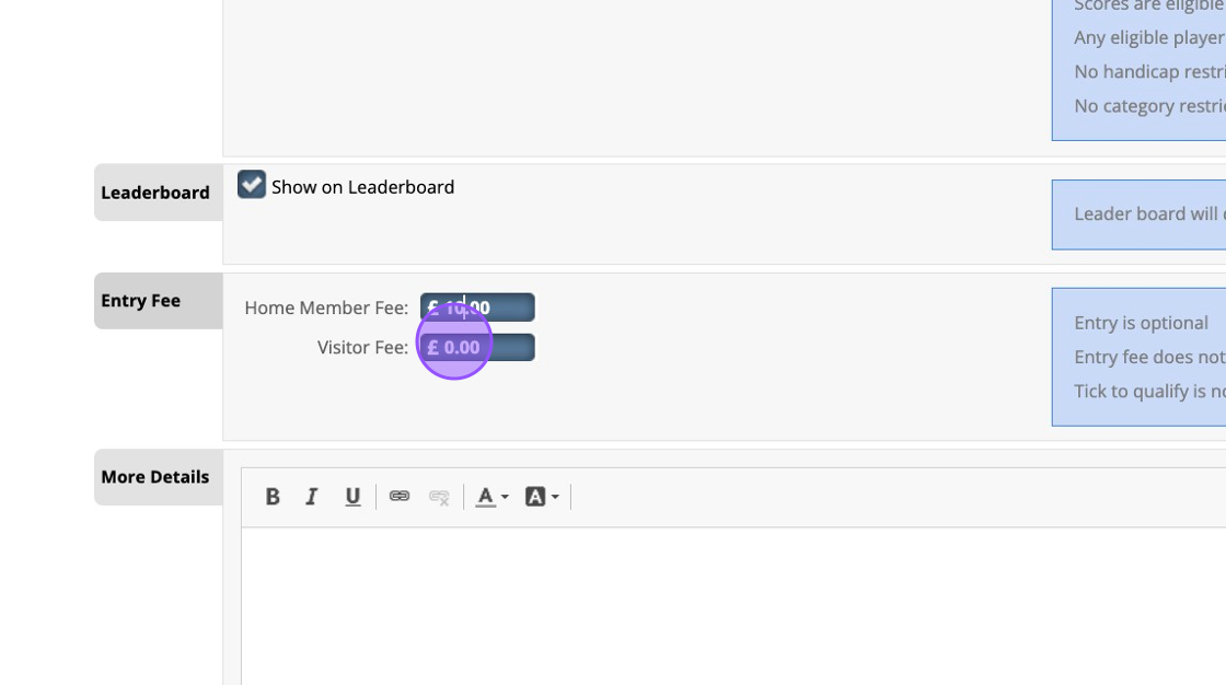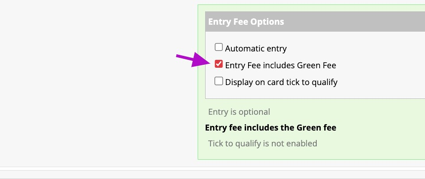 8. You can then decide if the Entry is inclusive of the green fee for visitors entering your open. If not then they will be charged a green fee as well as the entry fee when entering the competition.