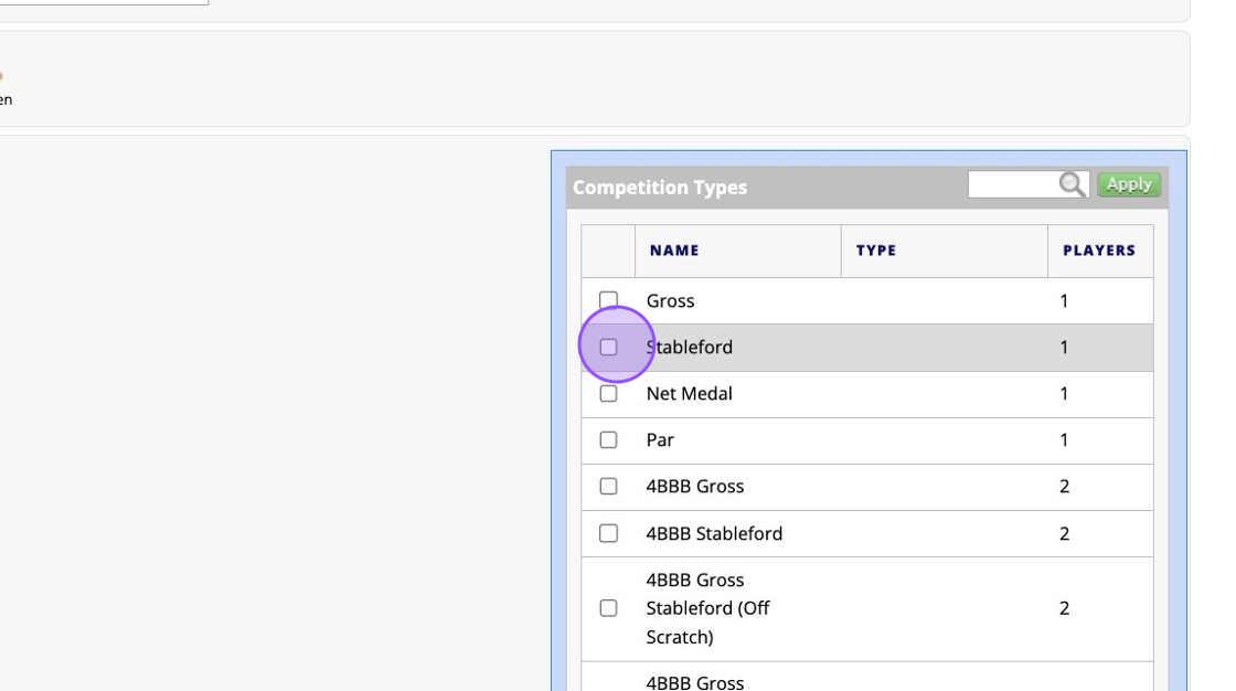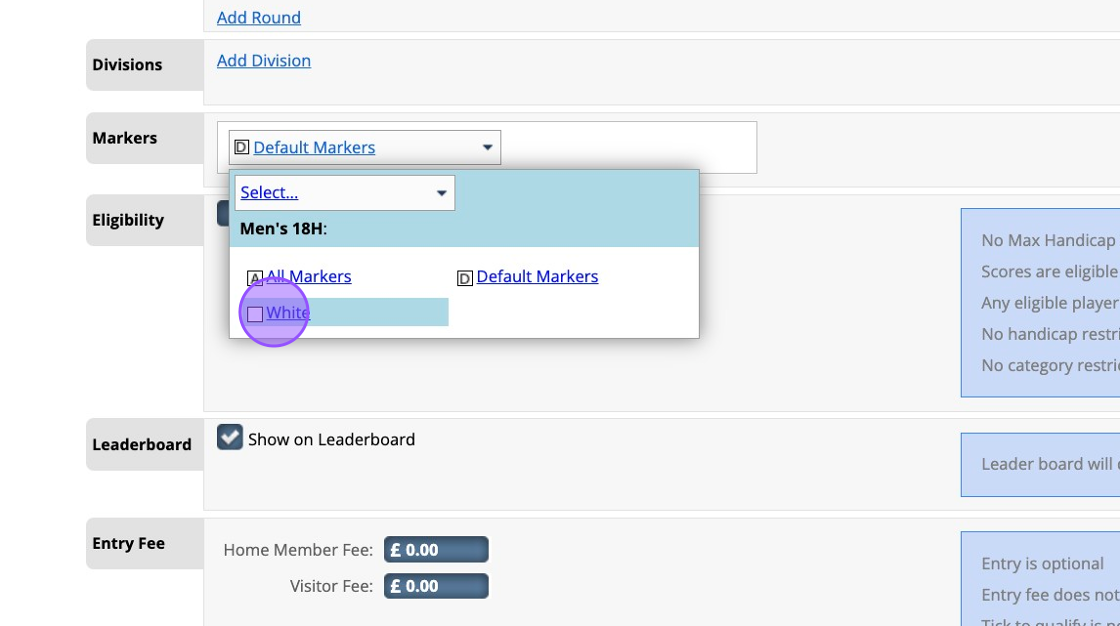 4. Select the Tees that apply to the competition