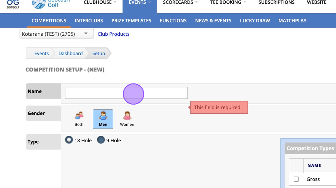 3. Select the format of the competition
