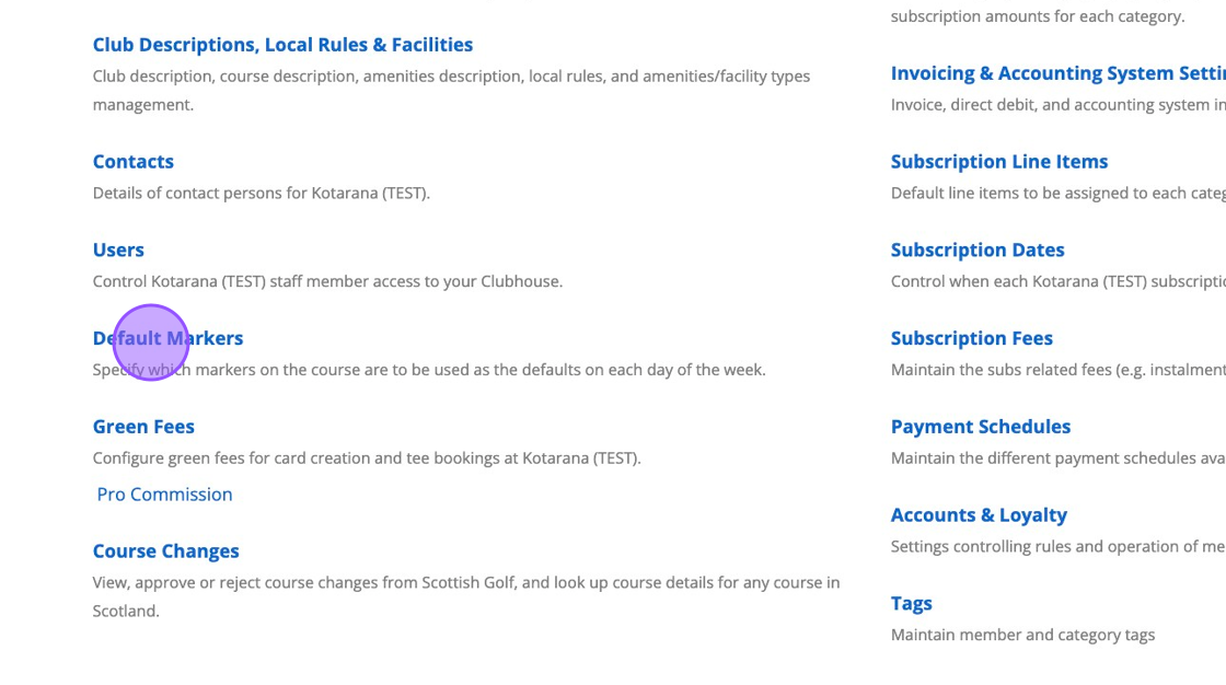 1. Click "SETTINGS" 2. Click "Default Markers" 3. To add a default marker click on "Add New" and choose the course you wish to apply the default markers to. 4. Click "Everyday" to quickly tick all boxes. 5. Once complete, click on Save Changes at the ...