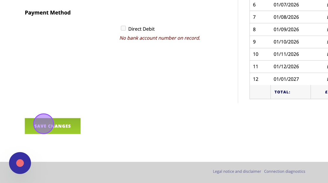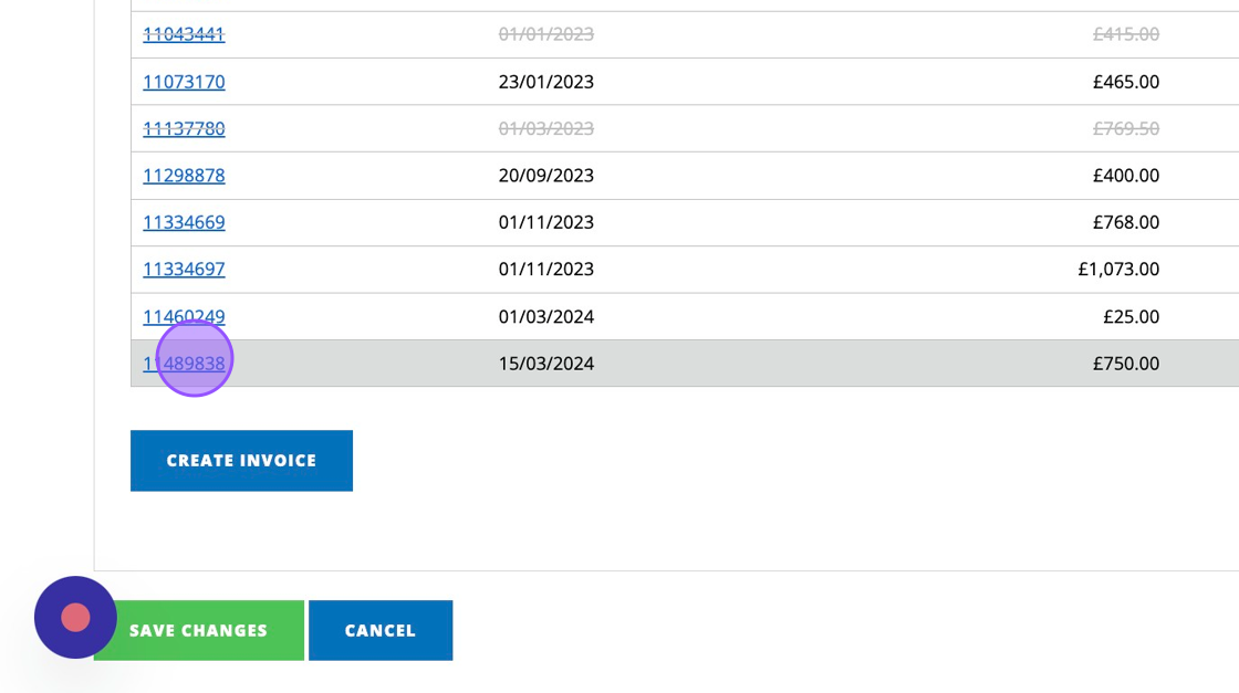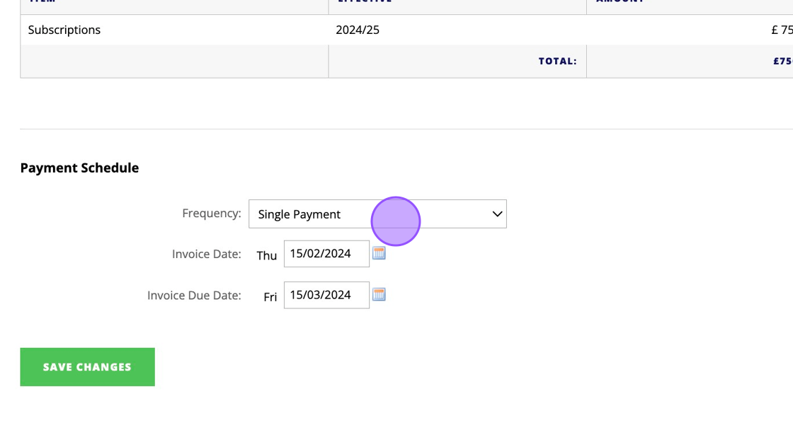11. Click "SAVE CHANGES" to apply this to the invoice. This will automatically update the invoice and provide the option when the player pays through the websites.