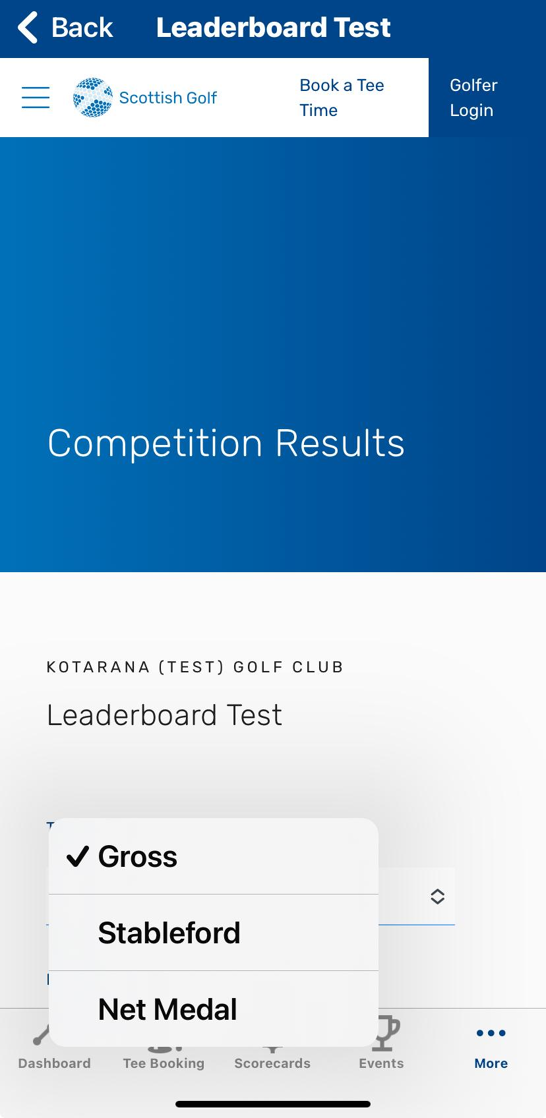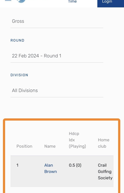 1. Live leaderboards can now be viewed using the APP and the competitions section of the members account in the club and Scottish Gol websites