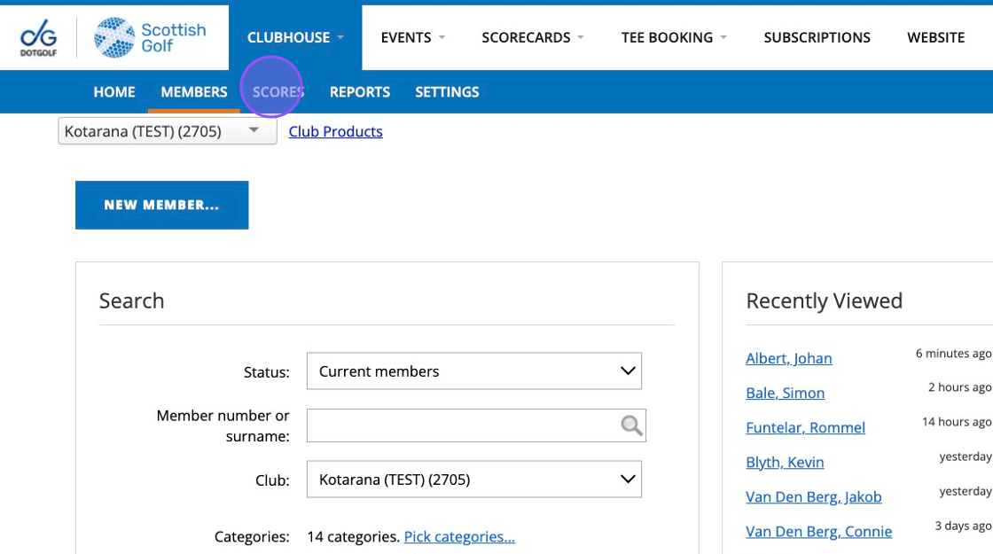 There has been a slight change to the way manual scorecard entry options are presented when in the back office. Please follow the steps below which set out the changes. 1. Navigate to https://live.clubhouse.scottishgolf.org/TabMembers.aspx 2. Click ...
